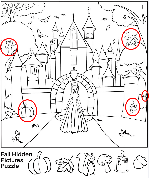 This isn’t just a castle, a princess, or a squirrel in a tree—it’s an invitation to imagine. Every hidden object adds to the story. Perhaps the candle hints at a secret passageway, or the pumpkin is waiting for a fairy godmother. The possibilities are endless, and that’s the real charm of hidden object art: it allows you to co-create the story with your discoveries.