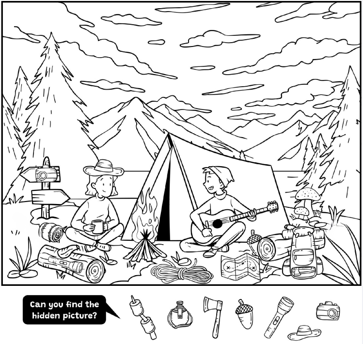 Looking closely at the illustration, we can see that the campers came well-prepared. Their gear highlights the basics every camper should bring for a safe and enjoyable experience: