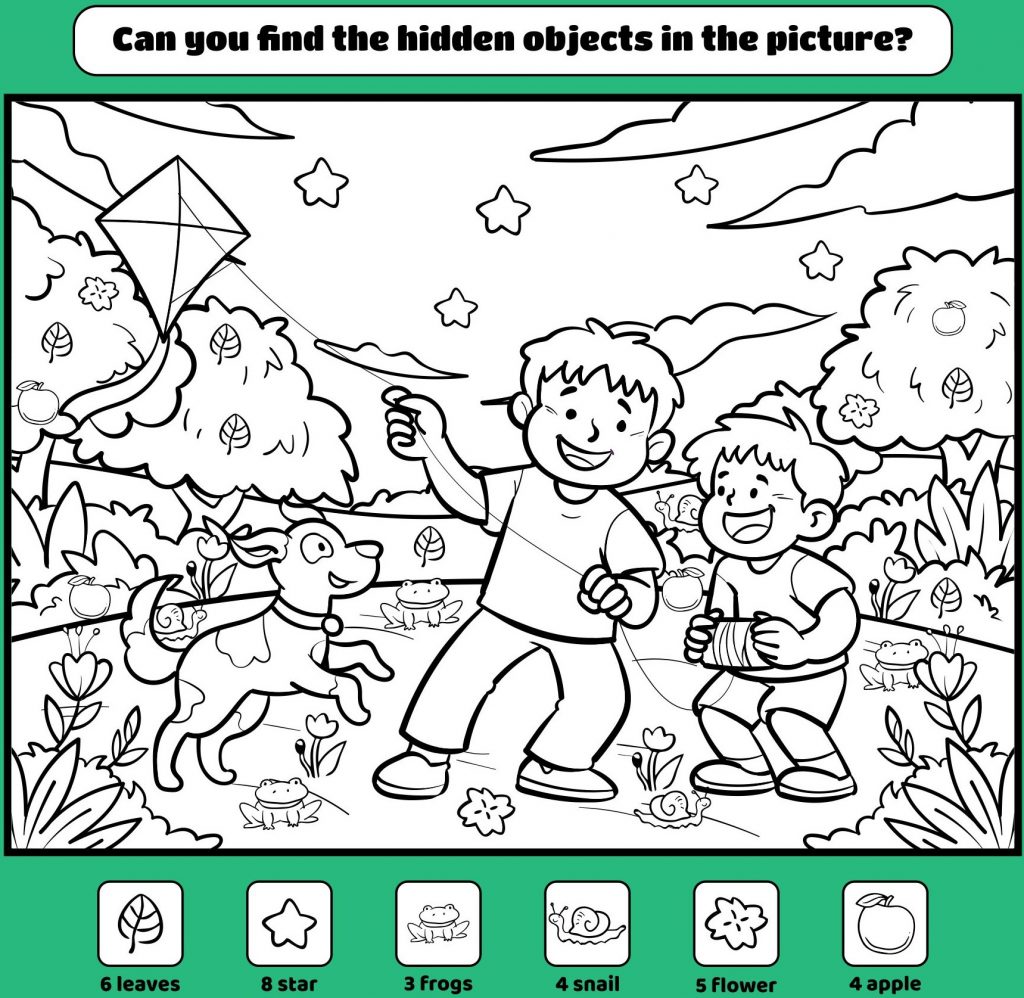 This joyful kite flying scene reminds us that happiness doesn’t need to be complicated. A kite, a spool of string, and a sunny park are enough to create a day filled with laughter, friendship, and discovery. From the excited children and their playful pup to the frogs, flowers, and hidden details of nature, everything works together to show the beauty of simple outdoor adventures.