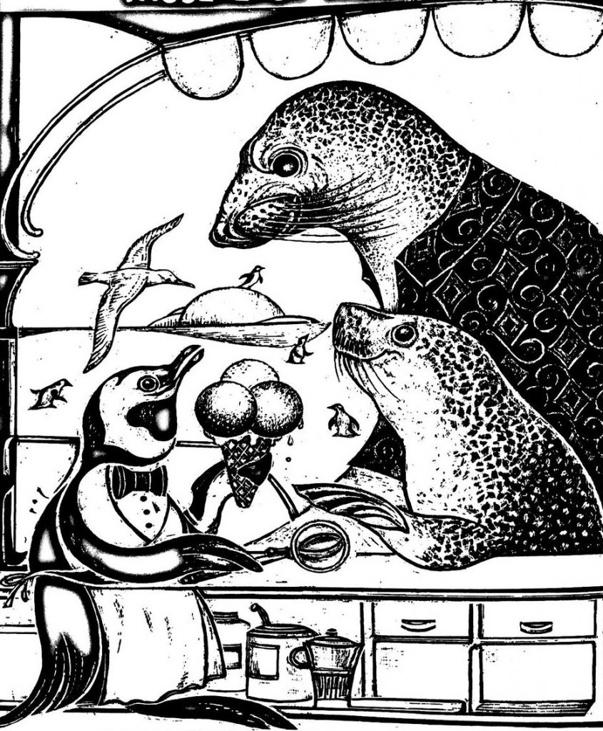 In a charming twist of imagination, this delightful illustration transports us to an icy wonderland where a penguin runs an ice cream parlor for his seal friends. With scoops stacked high and a smile of pure satisfaction, this scene captures a whimsical moment that melts even the coldest of hearts. It’s more than just a cute picture — it’s a story of friendship, humor, and the small joys that make life sweeter, even in the chilliest of climates.