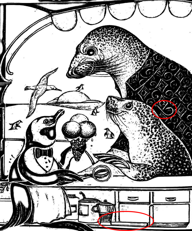 Across the counter, two seals eagerly await their order. Their eyes light up at the sight of the towering triple scoop — a frosty masterpiece fit for the Arctic elite. The playful energy between the characters makes this moment feel alive. It’s a reminder that joy and community can thrive anywhere — even at the edge of the world.