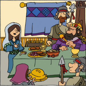 Queen Esther’s Bold Banquet: A Feast That Changed History A Scene of Courage Behind a Royal Curtain At first glance, this illustrated scene looks like a festive…