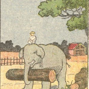 The Endearing Bond Between a Boy and His Elephant: A Tale of Friendship and Imagination This charming vintage illustration of a young boy sitting serenely atop a…