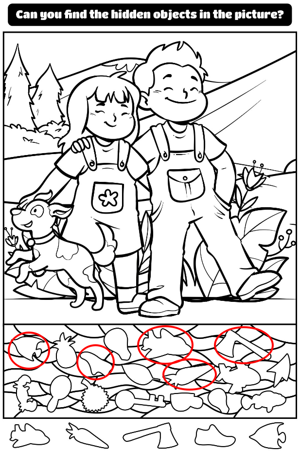 • The Children’s Outfits: Notice their clothing details. The flower on the girl’s overalls or the pocket on the boy’s outfit might contain subtle shapes or patterns you didn’t notice at first glance.
