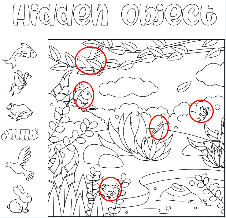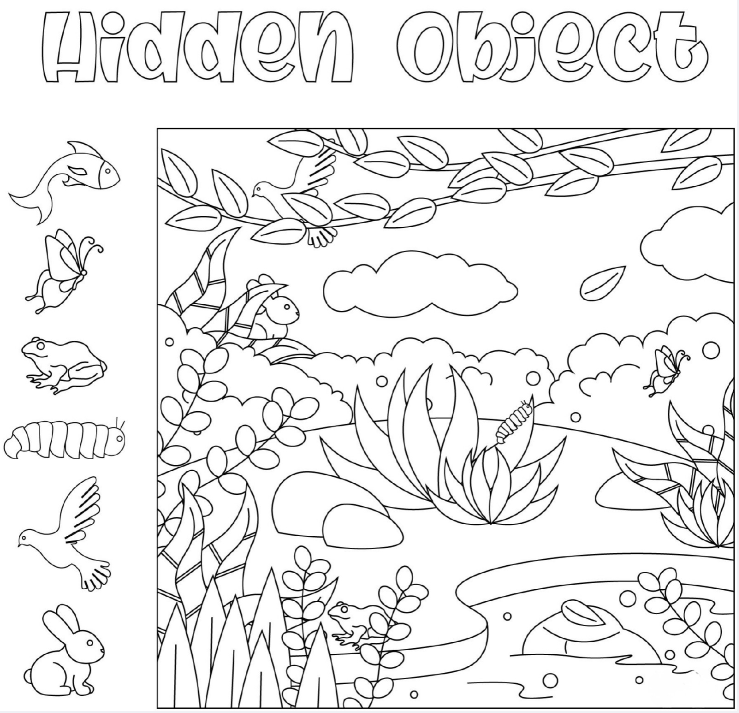 Every hidden object illustration has a story beneath its surface, and this pond scene feels like a peaceful chapter from nature’s own tale. Perhaps the frog is waiting for its next meal, the birds are gathering twigs for their nests, and the butterfly has just emerged from the caterpillar crawling below.