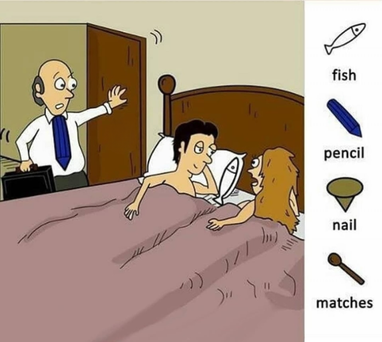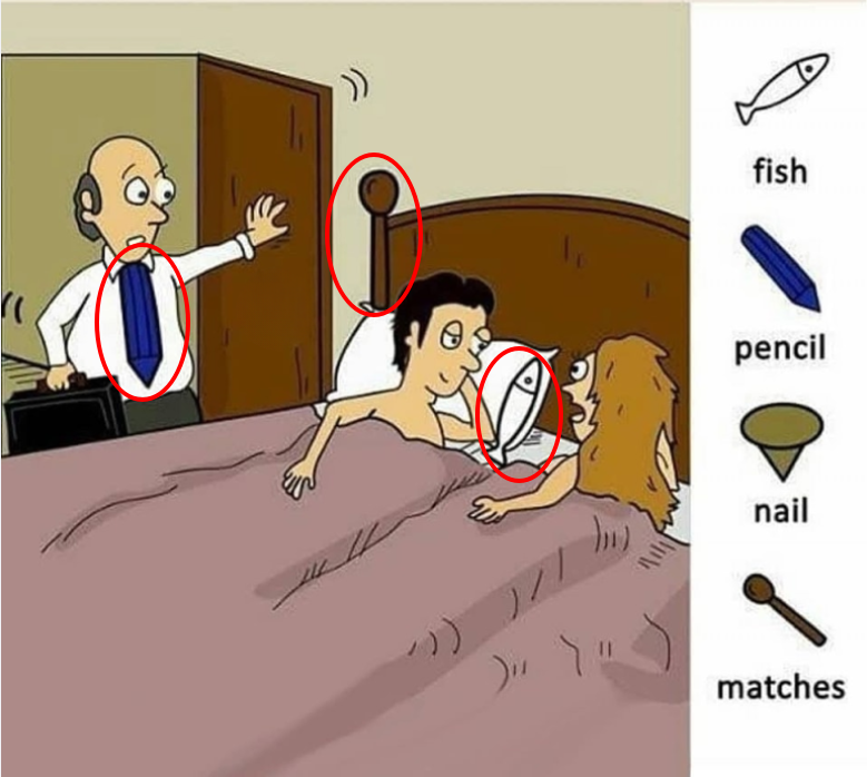 Picture this: a man strides into his bedroom, briefcase in hand, only to find his partner and someone else tangled up under the sheets. It’s awkward, hilarious, and—believe it or not—an ideal setting for a hidden-object puzzle. Your mission, should you choose to accept it, is to spot four everyday items cleverly stashed in plain sight: a fish, a pencil, a nail, and matches. Ready to dive into this risqué yet playful challenge? Let’s explore the scene, uncover the clues, and sharpen those eagle eyes.