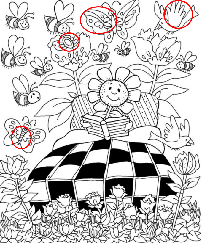 There’s something beautifully heartwarming about this cheerful garden scene. Imagine a sunny afternoon where flowers bloom in full color, bees buzz in rhythm, and butterflies flutter gracefully through the air. In the center of it all sits a smiling flower, cozily perched on a checkered picnic blanket, reading a stack of books. Birds swoop by as if listening to a story being told, and the entire garden hums with peaceful delight. This lively hidden object illustration captures the essence of spring’s magic — a blend of calm, curiosity, and joy that invites you to look closer and uncover the details hiding within.