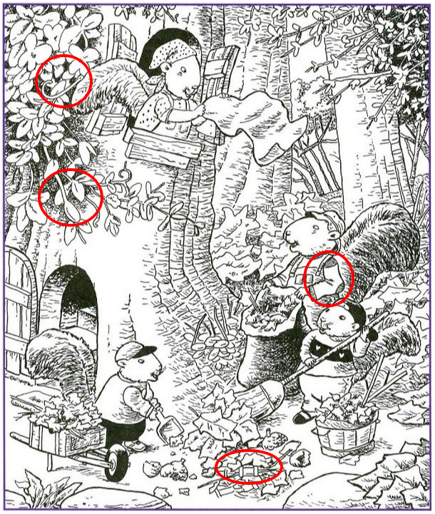 - The Squirrels’ Tools: Wheelbarrows, shovels, and brooms are everywhere. But are they all ordinary? Some may hide unusual shapes or extra details that don’t quite belong.