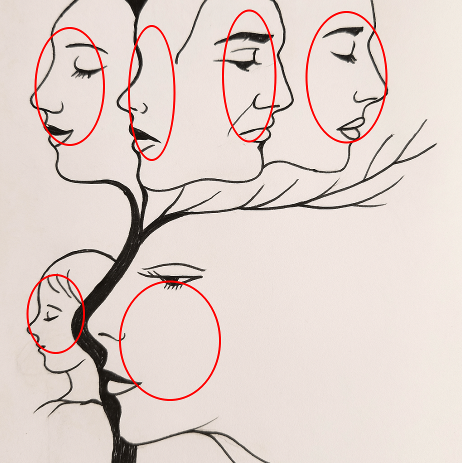 What makes this drawing so captivating is its clever use of illusion. Instead of showing a tree in the traditional sense, the artist transforms its lines into human profiles. Each branch and curve carries dual meaning: part of a tree, part of a face. This duality makes the piece thought-provoking.