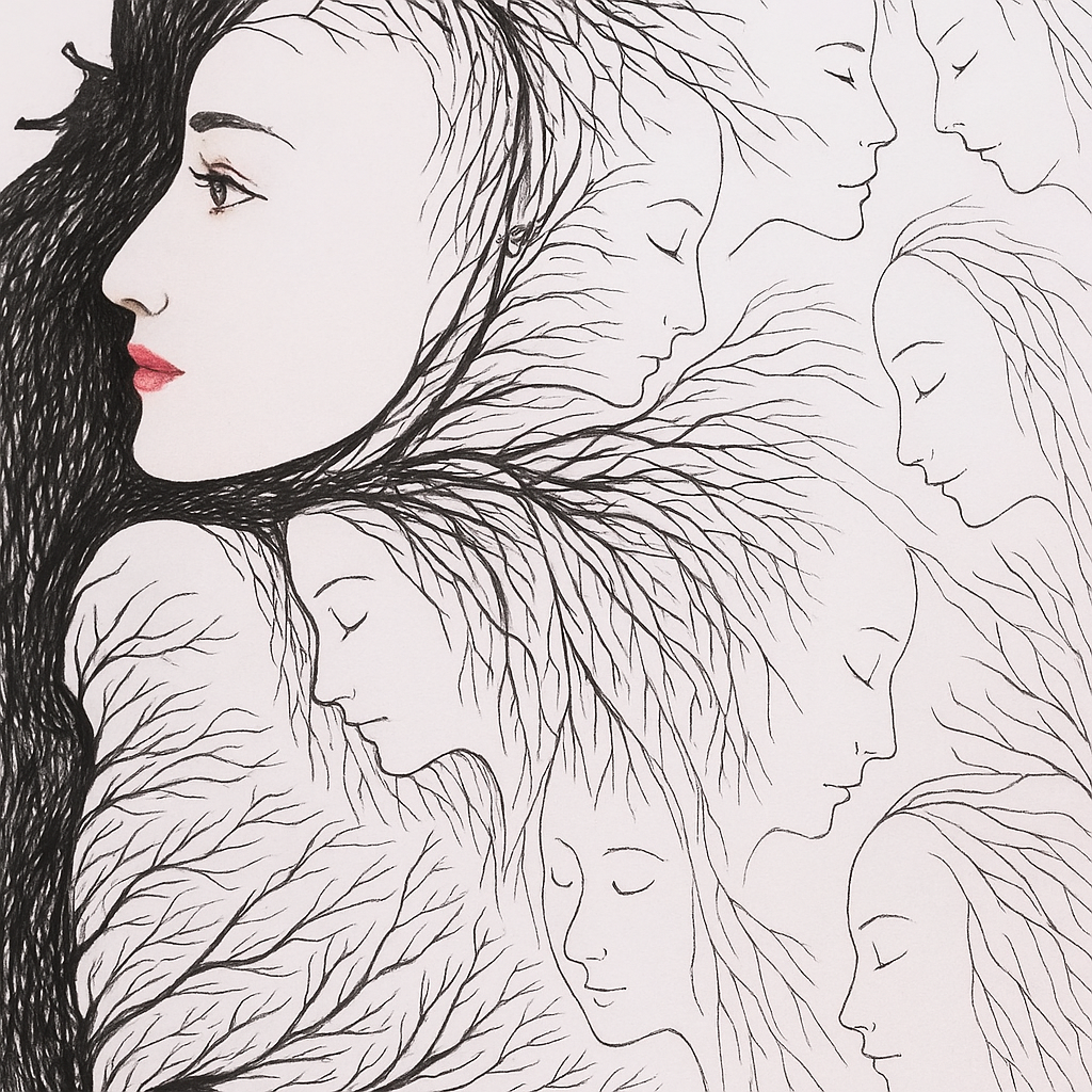The tree of faces is more than just an illustration. It’s a meditation on identity, memory, and our connection to nature. Every branch, every face, every subtle line reminds us that life is intertwined. We are rooted in the past, growing in the present, and reaching for the future.