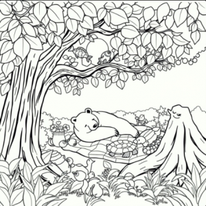 Embrace Tranquility: A Woodland Picnic with a Slumbering Bear Coloring Adventure Discover the Serenity of Forest Coloring PagesStep into a peaceful woodland clearing where a gentle bear…