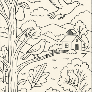 Enchanting Forest Escape: A Whimsical Coloring Page of Pear Trees, Birds, and Hidden Wonders Discover the Magic of Nature-Themed Coloring PagesStep into a serene woodland world brimming…