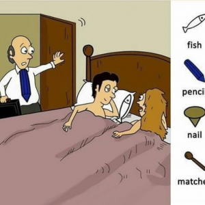 Find fish, pencil, nail and matches.
