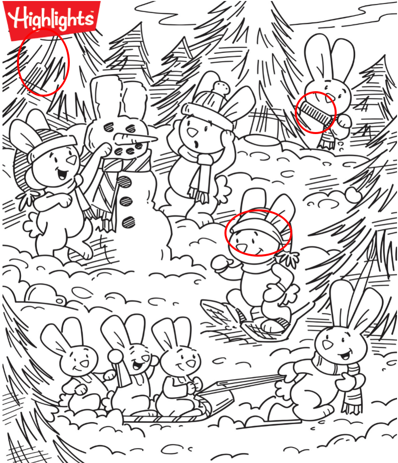 What makes this picture even more exciting is its hidden object puzzle element. While the main action is obvious, several details are subtly tucked into the snow and trees, waiting to be found. Look closely, and you might discover: