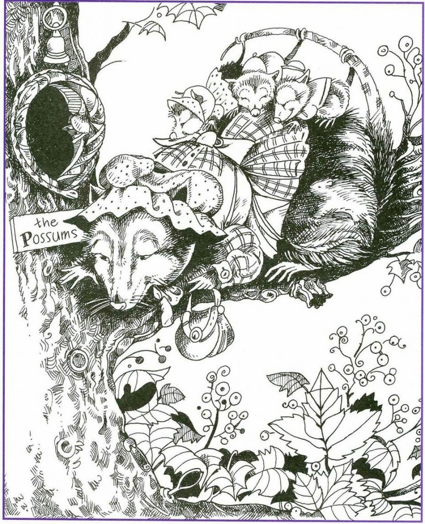 There’s something enchanting about a quiet forest scene—especially when it’s filled with tiny surprises waiting to be found. In this whimsical illustration titled “The Possums,” a family of sleepy marsupials nestles comfortably in their tree home. At first glance, it looks like a simple, heartwarming picture. But take a closer look, and you’ll find there’s more hidden among the leaves, bark, and shadows than meets the eye.
